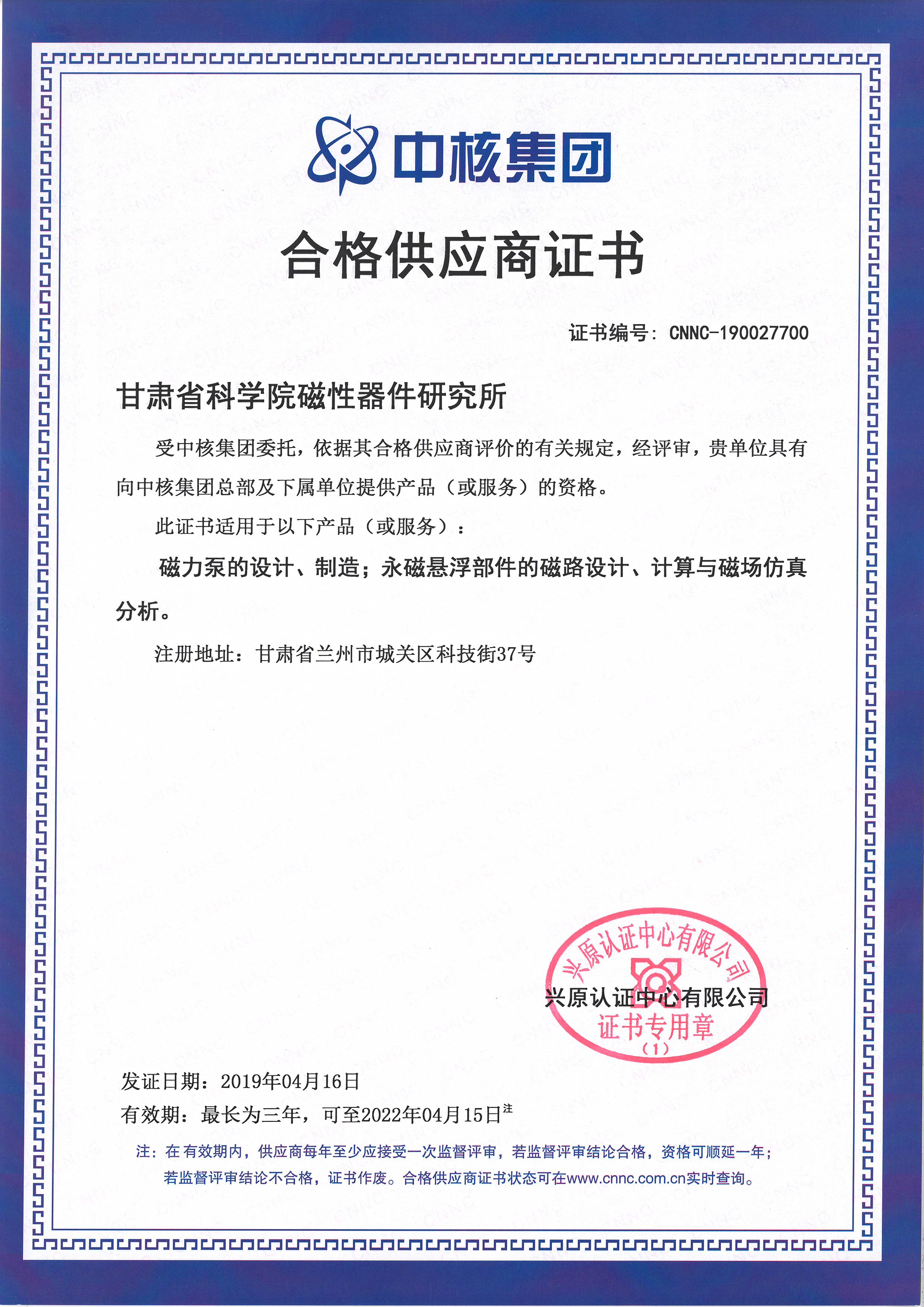 中核集團合格供應(yīng)商證書